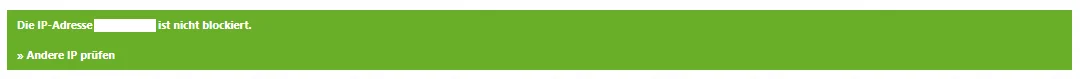 Oberhalb der Geräteübersicht wird angezeigt, ob die aktuell verwendete IP-Adresse blockiert ist. Mit einem Klick auf "Andere IP prüfen" können Sie ein Eingabefeld öffnen, um zusätzliche IP-Adressen zu überprüfen.