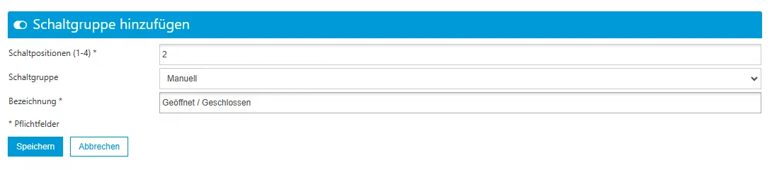 Bezeichnung: Vergeben Sie einen aussagekräftigen Namen für die Schaltgruppe, um sie später leichter zu identifizieren.