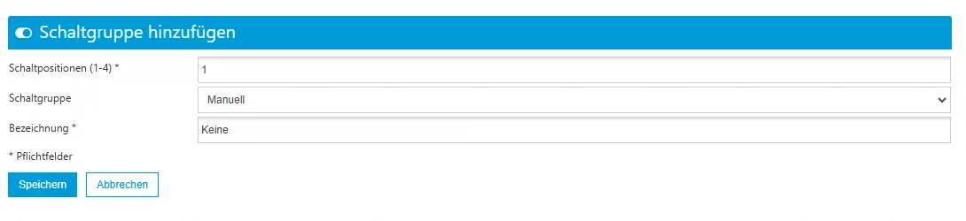 Schaltgruppen bearbeiten: Ermöglicht die Konfiguration der jeweiligen Schaltpositionen innerhalb der Schaltgruppe.