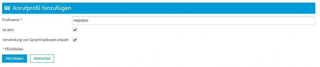 Anrufprofile sind vordefinierte Einstellungen, die für jeden Benutzer Ihrer CloudCall-Telefonanlage erstellt werden. Standardmässig stehen die Profile Direkt und Ringruf zur Verfügung, es können jedoch beliebig viele weitere Anrufprofile hinzugefügt werden. Diese Profile können als Ziele in Anrufverteilungen und Ringrufgruppen verwendet werden.