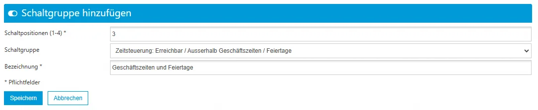 - Klicken Sie abschliessend auf "Speichern", um die Schaltgruppe zu erstellen.