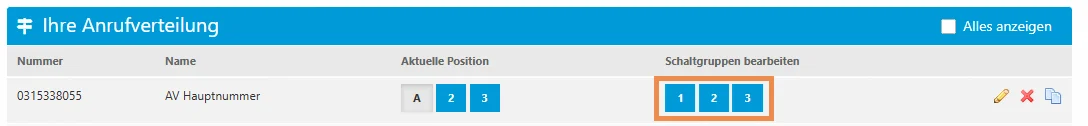 - Klicken Sie auf das Bleistift-Symbol neben der gewünschten Anrufverteilung, um sie zu bearbeiten.