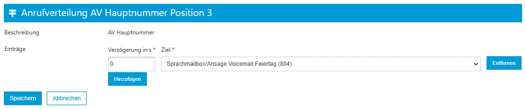 - Erstes Ziel: Der Anruf wird direkt an die Voicemail "Feiertag" weitergeleitet.
