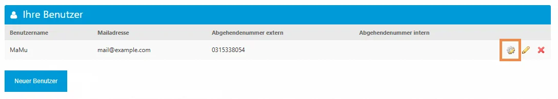 In der Benutzerübersicht können Sie alle angelegten Benutzer anzeigen, verwalten und bei Bedarf löschen. Über das Zahnrad-Symbol gelangen Sie zur Konfigurationsseite, um die Anrufprofile des jeweiligen Benutzers anzupassen.