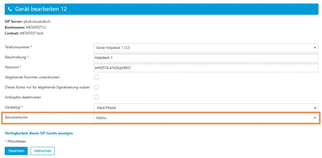 Hinweis: Nach der Zuweisung eines Geräts an einen Benutzer werden die Einstellungen für die Anzeigenamen und die abgehenden Nummern automatisch aus dem Benutzerprofil übernommen.