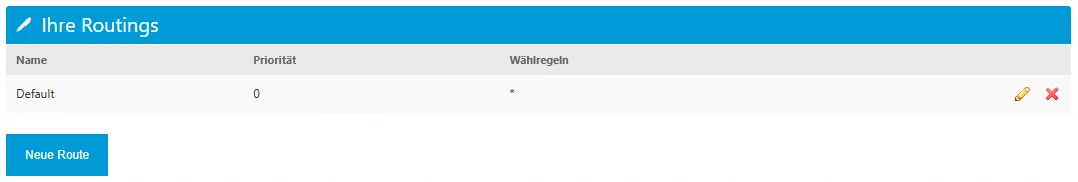 Beim Erstellen der PBX wird automatisch ein Standardrouting eingerichtet, das alle Anrufe über einen Trunk leitet. Zusätzlich können Sie weitere Routingregeln erstellen und individuell an Ihre Anforderungen anpassen.