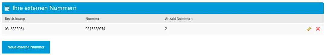- Klicken Sie auf die Schaltfläche "Neue externe Nummer", um eine neue Nummer oder einen Nummernbereich hinzuzufügen.